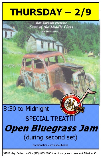 Special night at The Mission. Dan Eubanks, former bass player with Scott Holt, brings his new project to our stage. Not only is Jefferson City one of his first stops of this tour, Dan has also invited musicians to sit in for a traditional bluegrass jam. Don’t hear about this the next day and wish you would have know. Now you know! See you on Thursday.