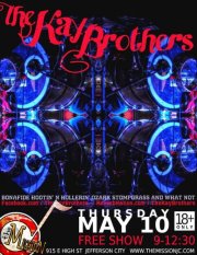 The spirit of Missouri ‘Stompgrass’ lives on in this brand spankin’ new trio, The Kay Brothers. Though the group was born last night, the members are certainly no strangers to the Midwest music scene. Hailing from such bands as The Hipnecks, The Hatrick, Mary & the Giant, and even a metal band – Ghost in the Machine – the players have been burning barns down since they were knee-high’s abd can chug moonshine without shedding a single tear. Armed with Upright Bass, Fiddle, Guitar, Harmonicas, bass drum, washboard, and sibling harmonies, they make a lot of noise, and you should too… Just be careful not to crack a heel.