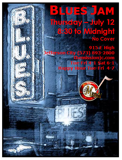 Blues Jam FINALLY!!! Open Blues Jams return to The Mission stage every second Thursday of the month. Jam will be hosted by Rich Robben, Dale Sapp, Pat Shortal, Wayne Johnson and Cam Lupkey! Share this:Like this:Like Loading...