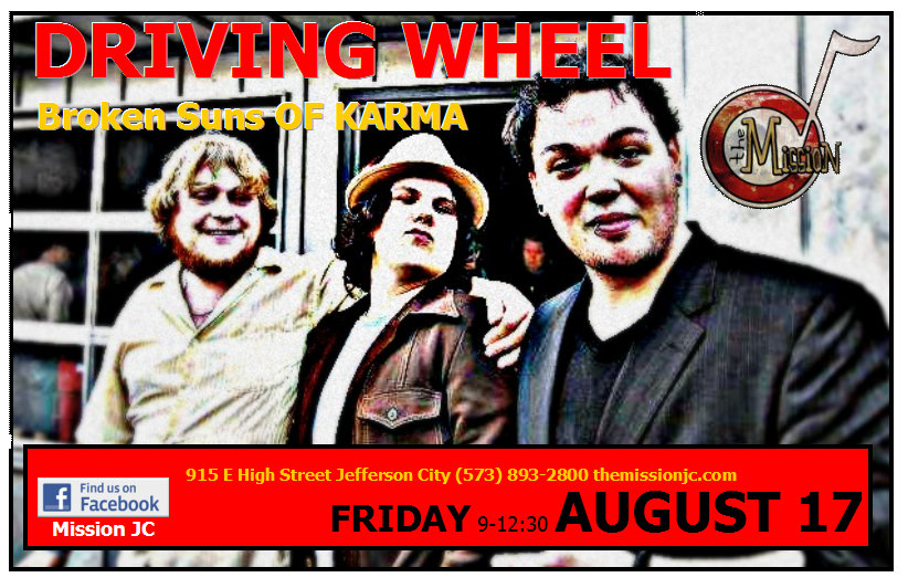 “With roots in Kansas City, Jefferson City and Columbia, Driving Wheel plays a mixture of jam band and rock.”