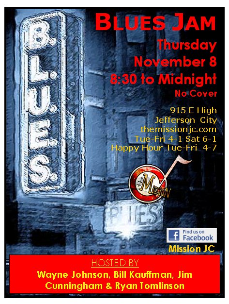 Open Blues Jam This week’s jam hosted by Wayne Johnson (bass), Bill Kauffman (drums) , Jim Cunningham (keyboards) Â & Ryan Tomlinson (guitar)!! Wanna jam?? Share this:Like this:Like Loading...